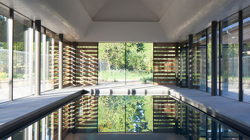 Located in the listed parkland of the Grade I mansion, which itself sits within the Yorkshire Dales National Park, Avalon has also had to respect the architecture of Sir Michael Hopkin’s Elegant pavilion immediately alongside, in the historic walled garden of the big house.