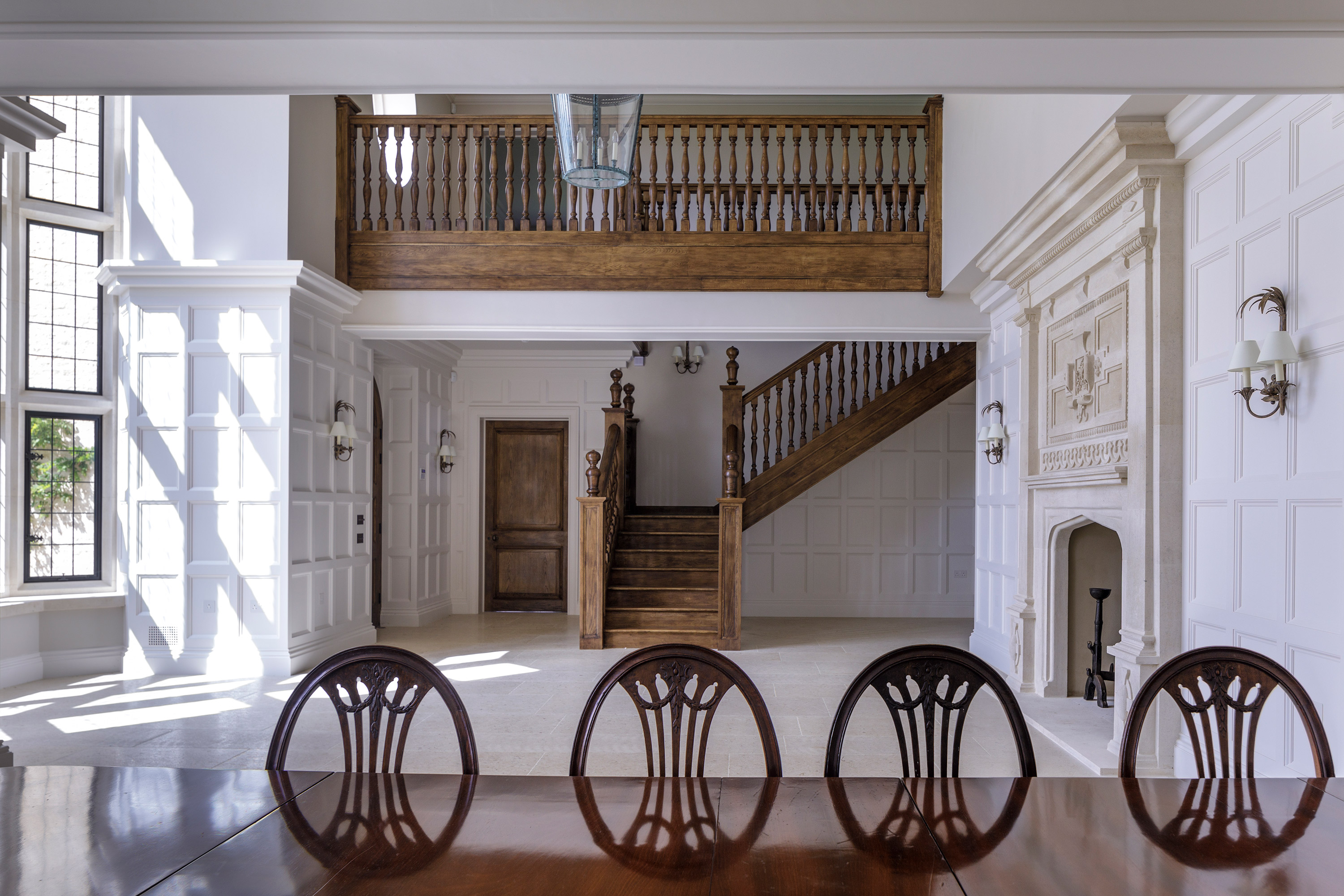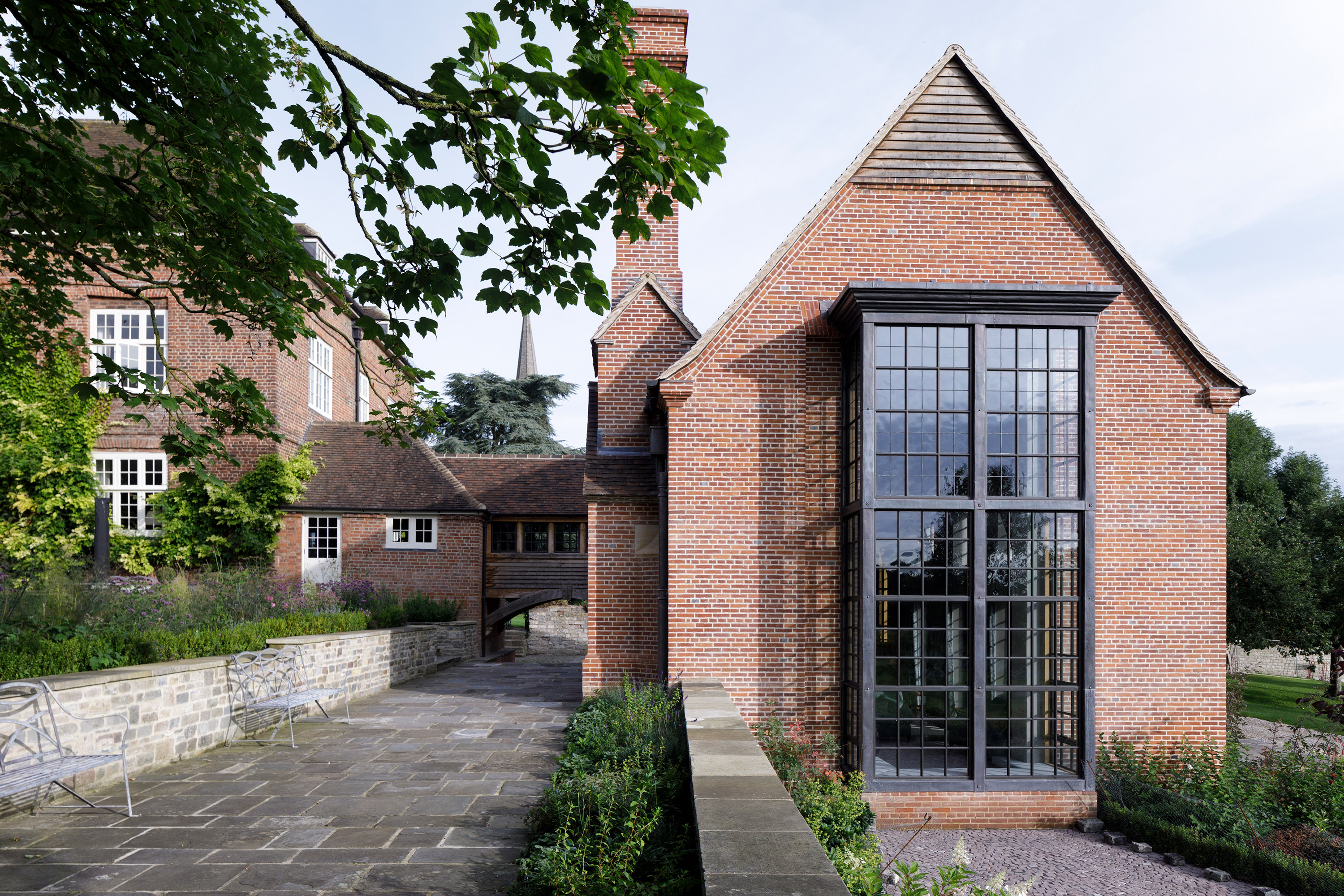 This new country house is in West Oxfordshire and sits on the edge of a charming village, looking across gently rolling countryside. There was no house previously on the site, and other designs by a series of architects had not been supported by Historic England and the planning authority. Instead of a classical design, we were keen to demonstrate that a more historicist vernacular scheme would be more appropriate in an area of the country so identified with gable form Manor houses.