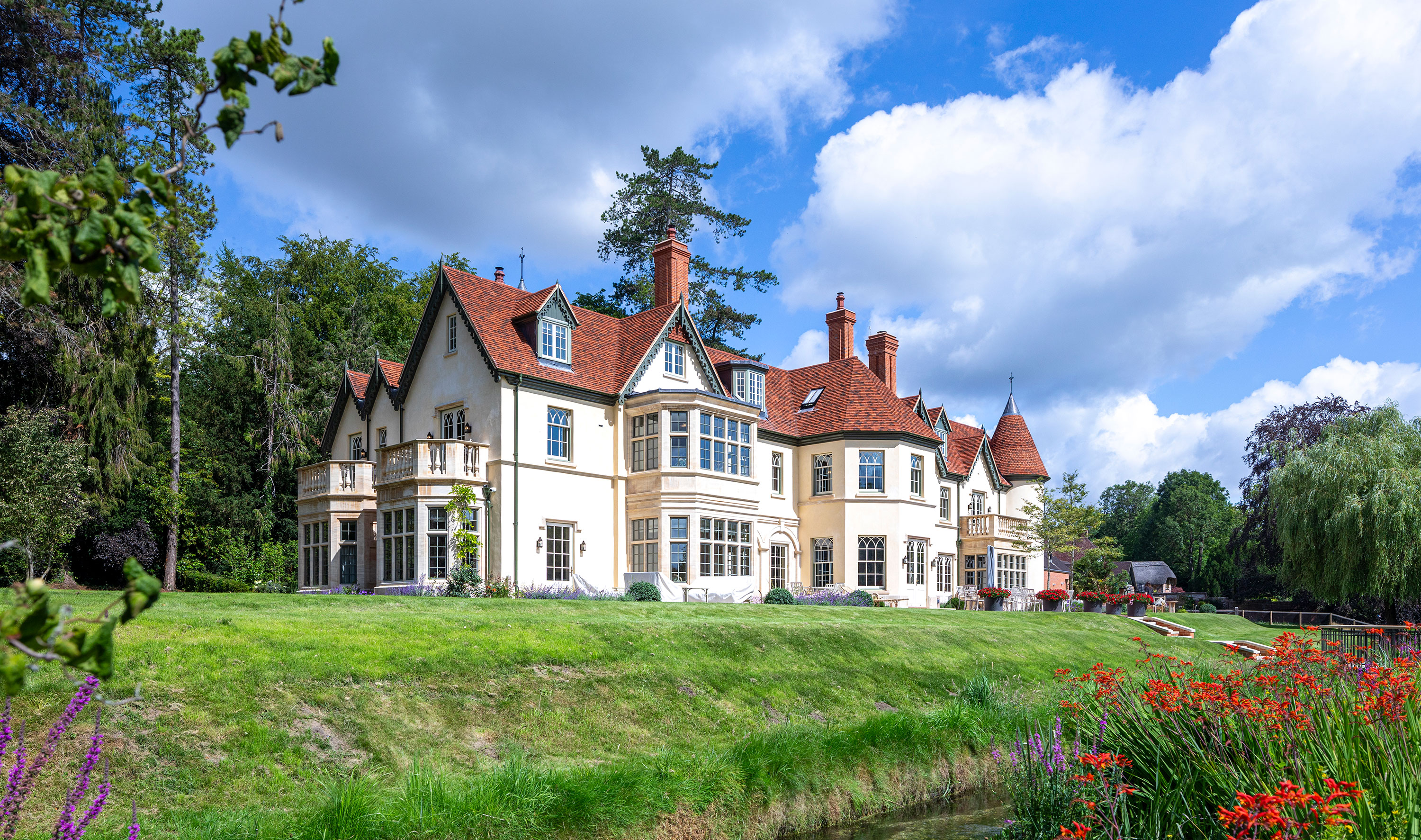 Yiangou Architects secured the planning consent for a dramatic transformation and beautification of this ugly duckling of a house. Yiangou have overseen all aspects of the project to create an idyllic and supremely comfortable lodge style property which is more than twice its 19th century size, including a new wellbeing centre and charmingly scaled thatched fishing hut within the stunning grounds.