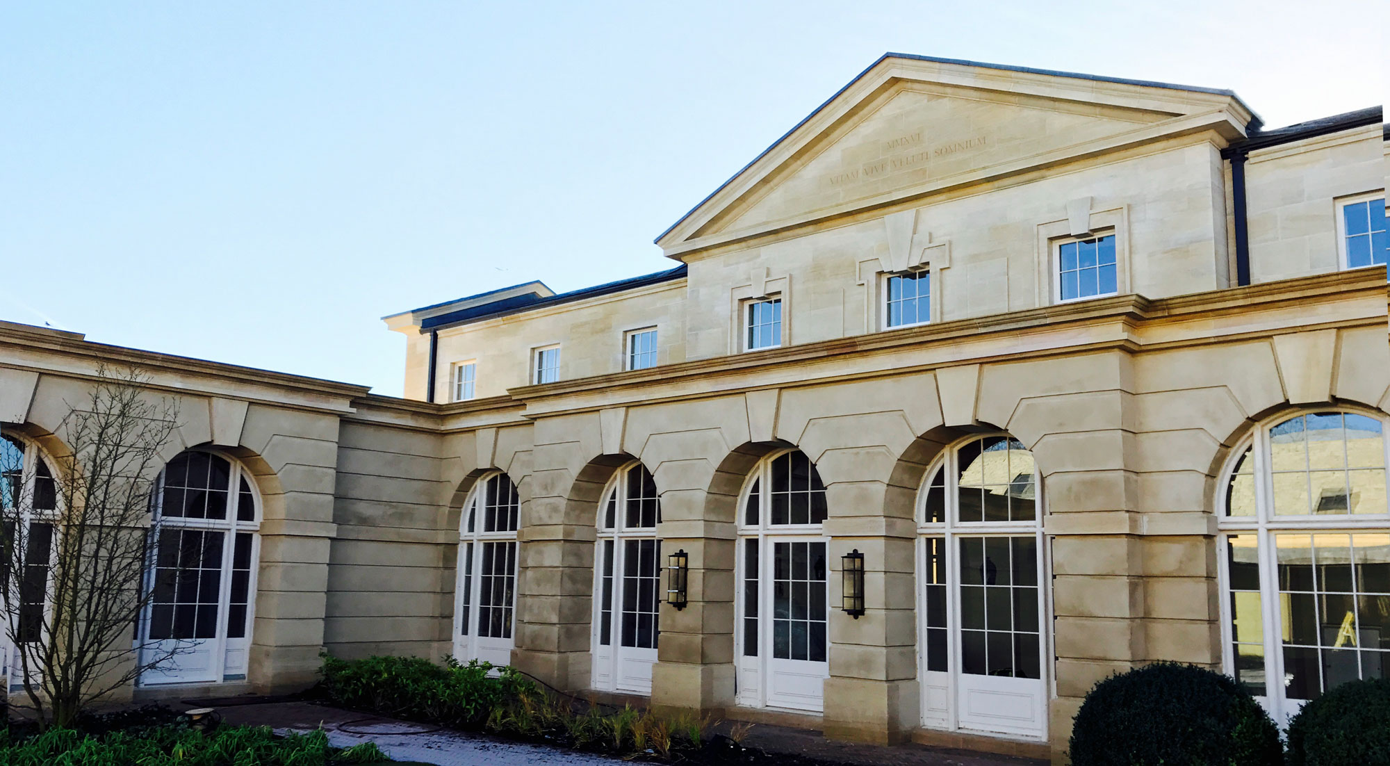 The house was the result of a careful study of precedents to be found in that part of England from about 1740-1760, and the client’s own desire to create a legacy home of outstanding quality and finish. It is built of the finest ashlar stone throughout and has an abundance of architectural detail, including a richly ornamented entrance doorway and surround, and a principal garden opening which is surmounted by a newly conceived family coat of arms.