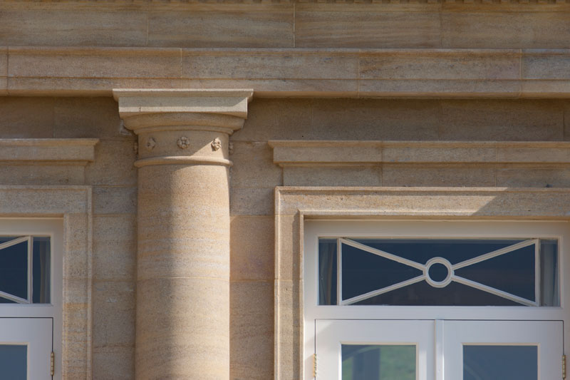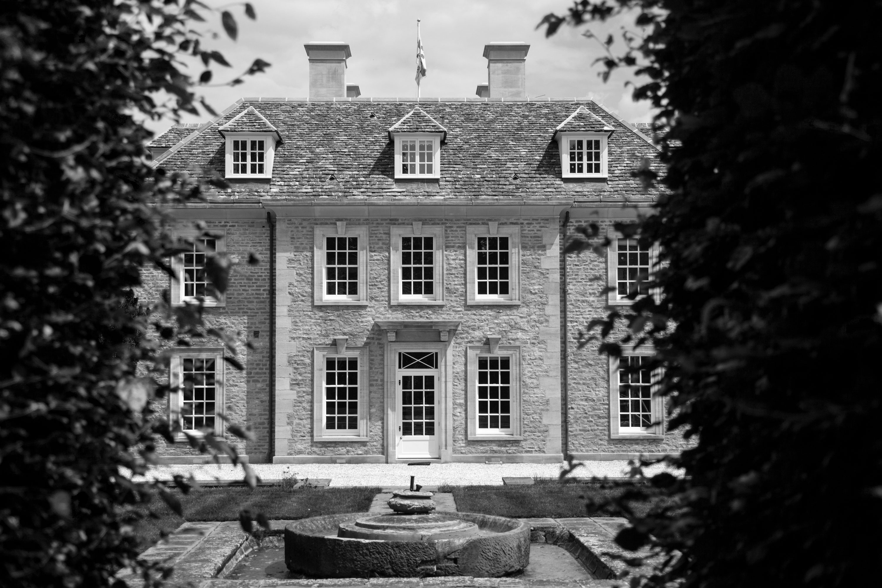 The house has a square plan to the main block with an elegant suite of reception rooms located around the core of a gracious, top lit central hall. The house is very much in the Cotswold William and Mary and Queen Anne idiom. It has a tall sprocketed roof with walls of both locally quarried stone to the walls, and finely mounted ashlar work to the window surrounds and door openings. The serenity of the composition is very much the result of much attention to proportion and our understanding of perfect window to wall proportions.